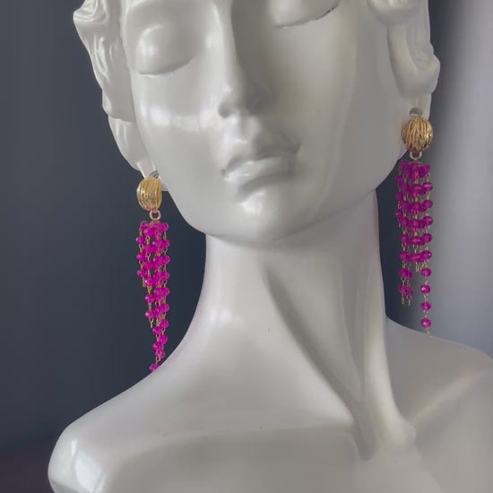 Gold Chandelier Earrings with 3mm Pink Beads – 14K Gold-Tone Ball Studs