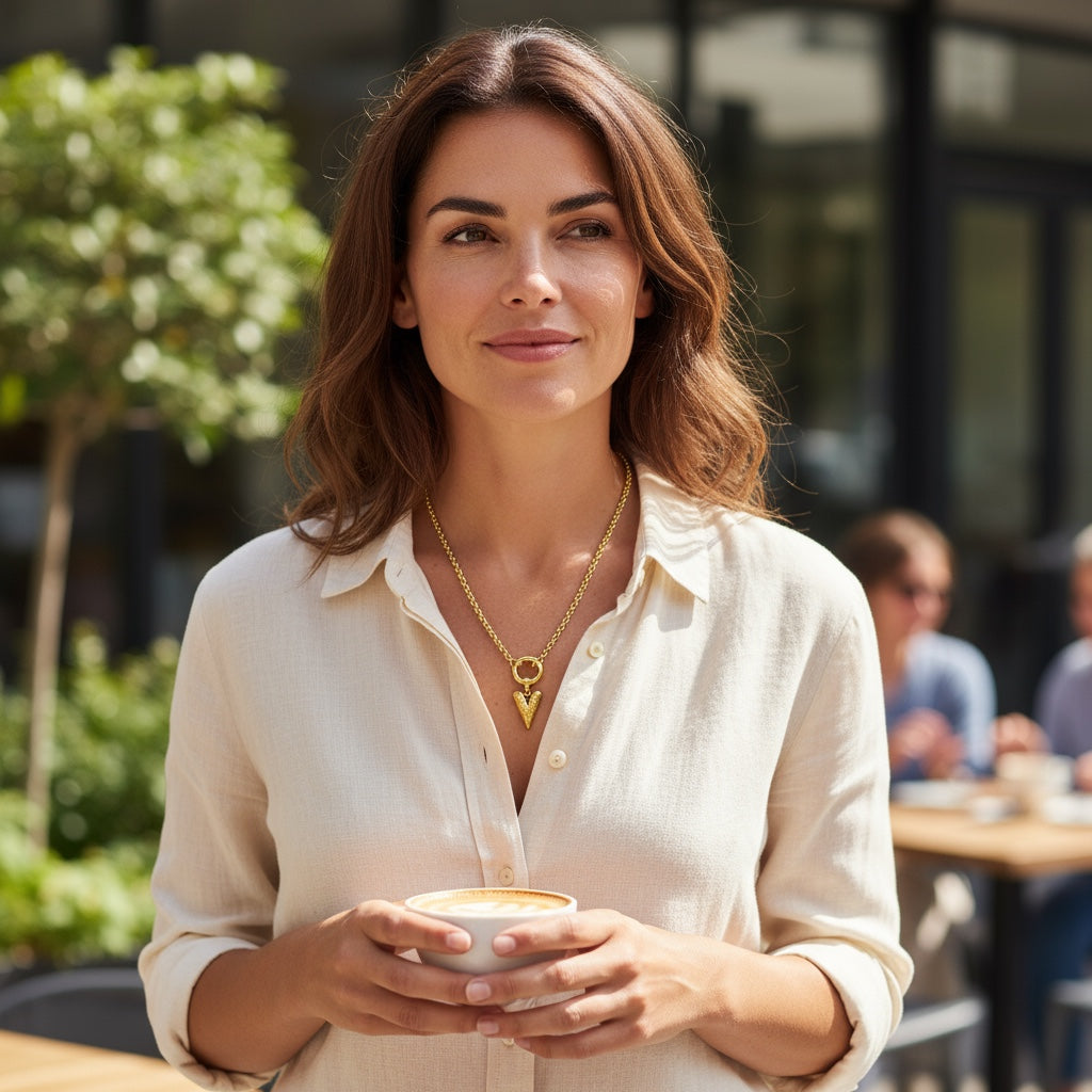 Gold Heart Pendant Necklace – 18" Stainless Steel Chain with Toggle Clasp