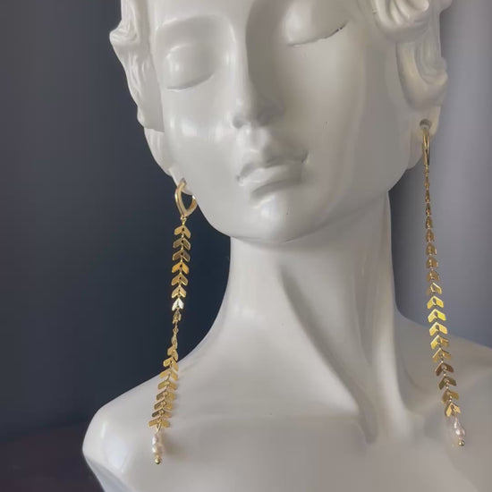Gold Stainless Steel Plane Shape Earrings with Natural Pearl Accent