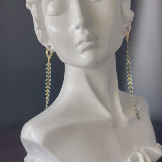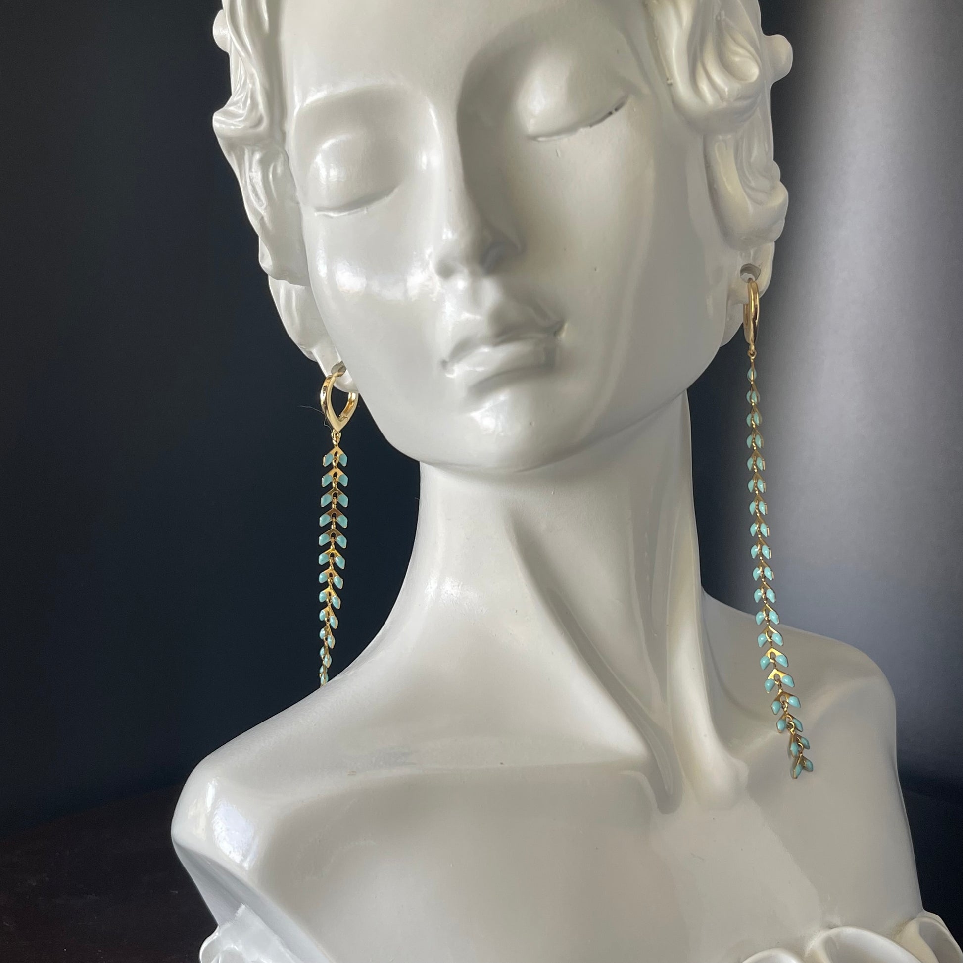 Gold Stainless Steel Plane Shape Seafoam Green Enamel Earrings