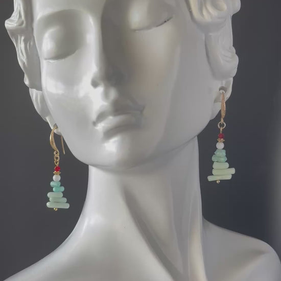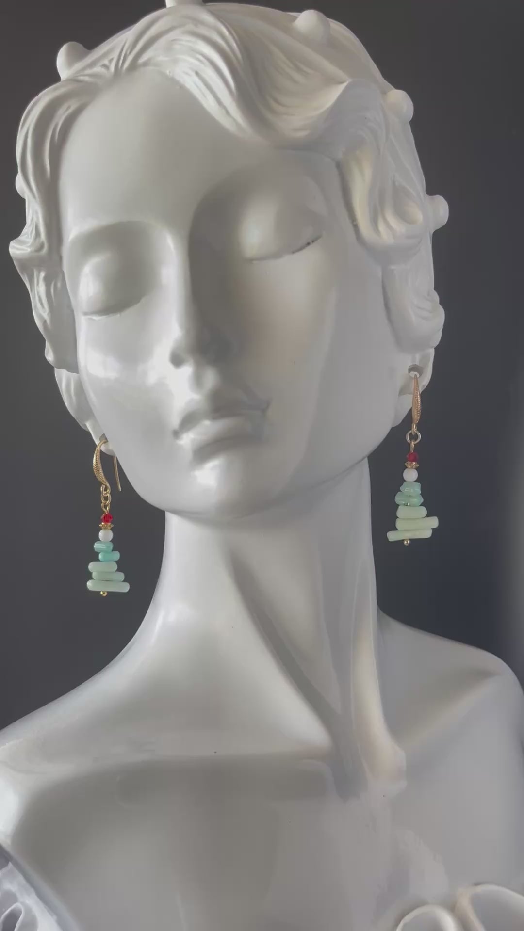 Handcrafted Christmas Tree Earrings - Dangle Earrings with Gold Hooks