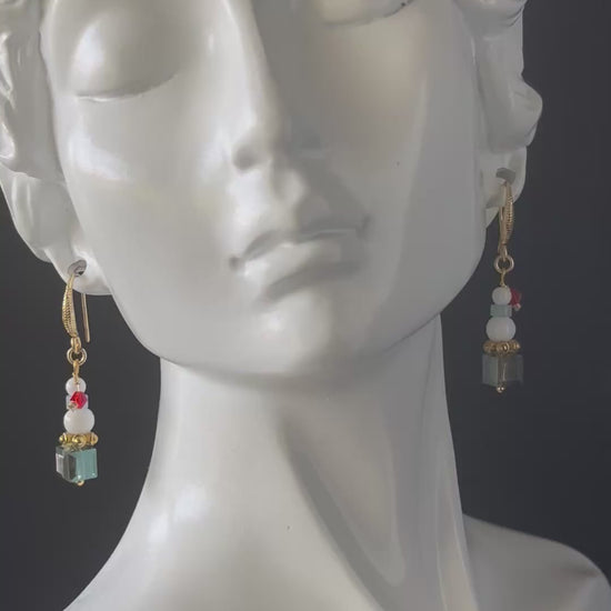 Handcrafted Snowman Christmas Earrings - Austrian Crystal Dangle Earrings with Gold Hooks