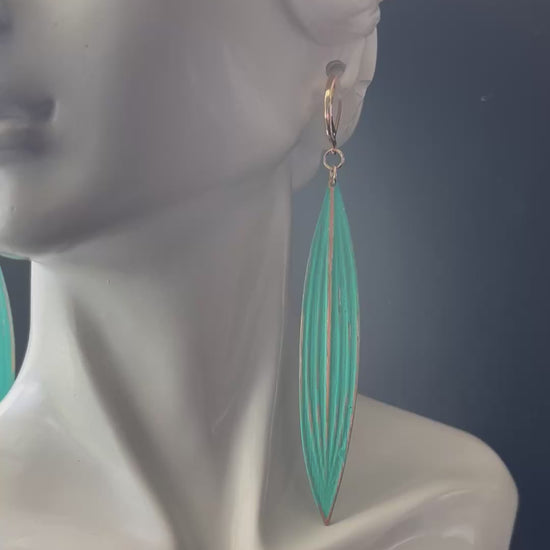 Leaf Shaped Earrings in Teal with Gold Color Plated Brass Clip