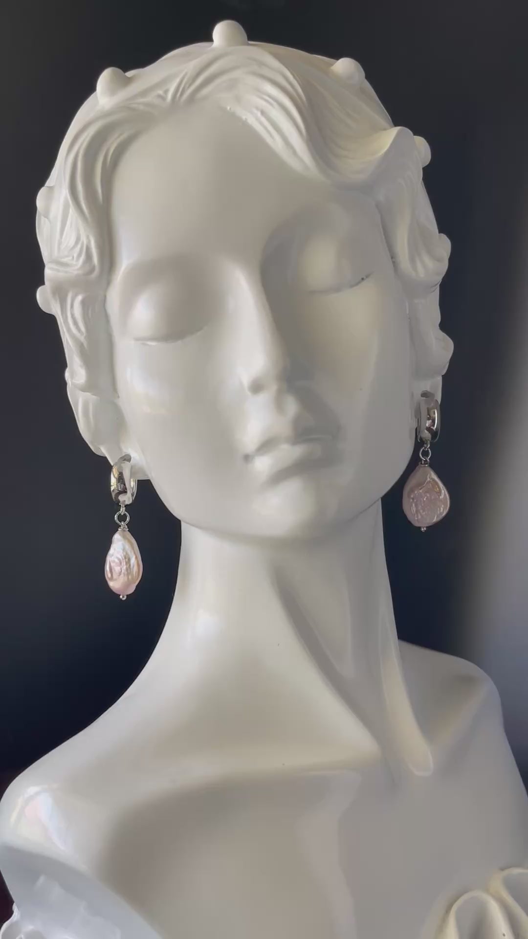 Teardrop Pink Pearl Earrings – Rhodium Finish with Clasps & Hooks